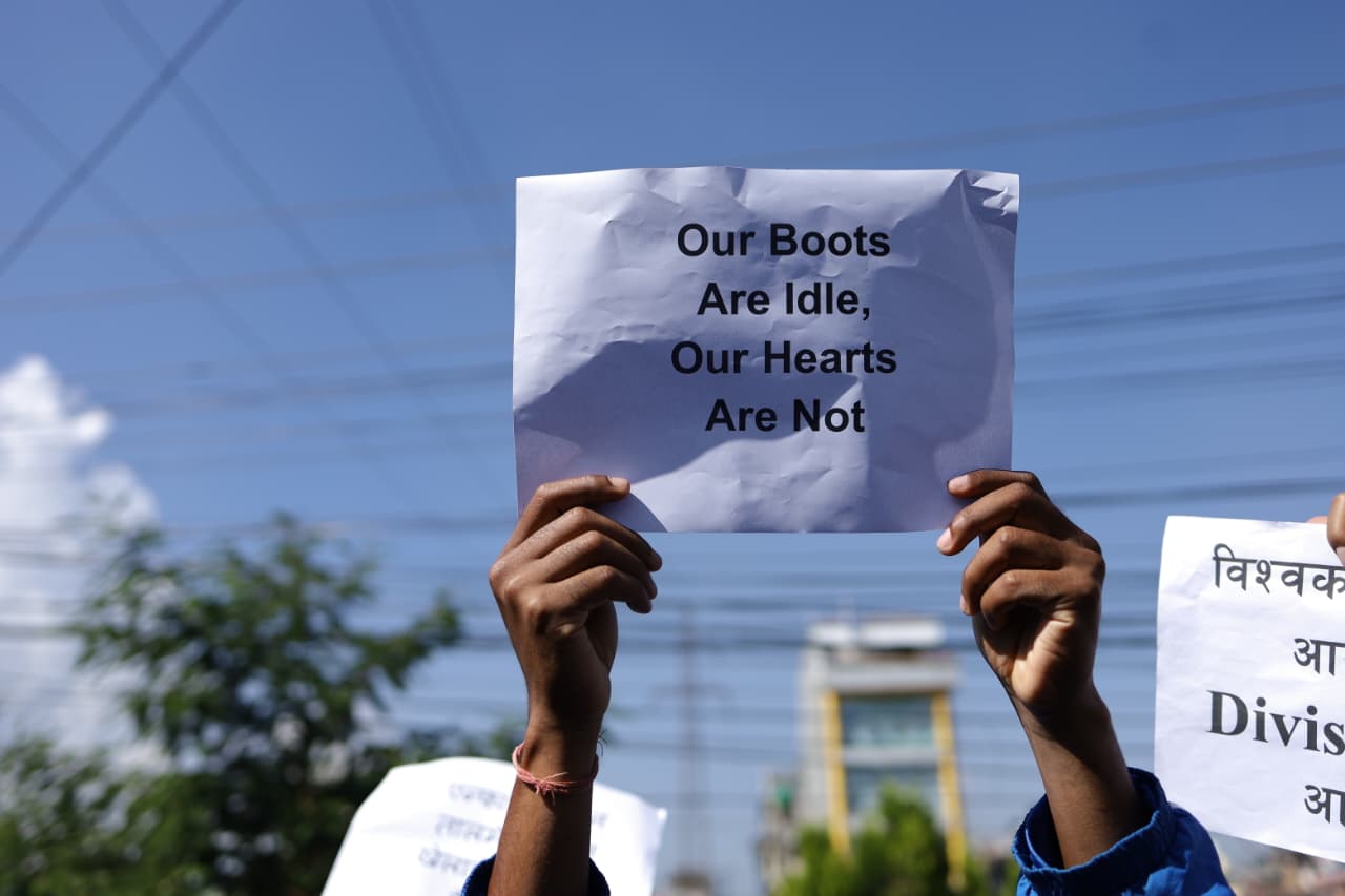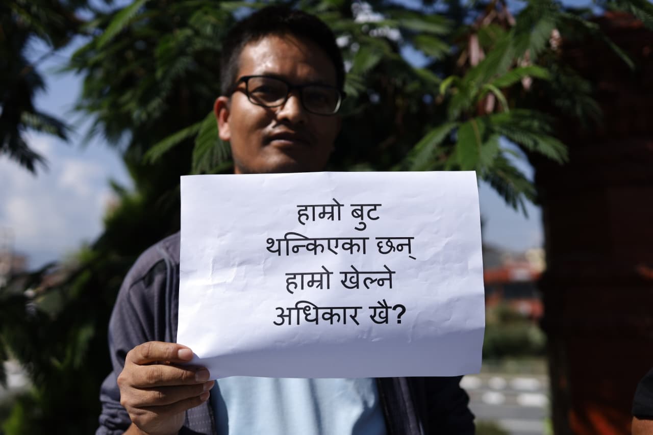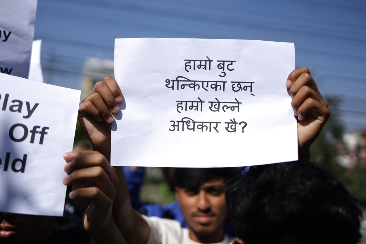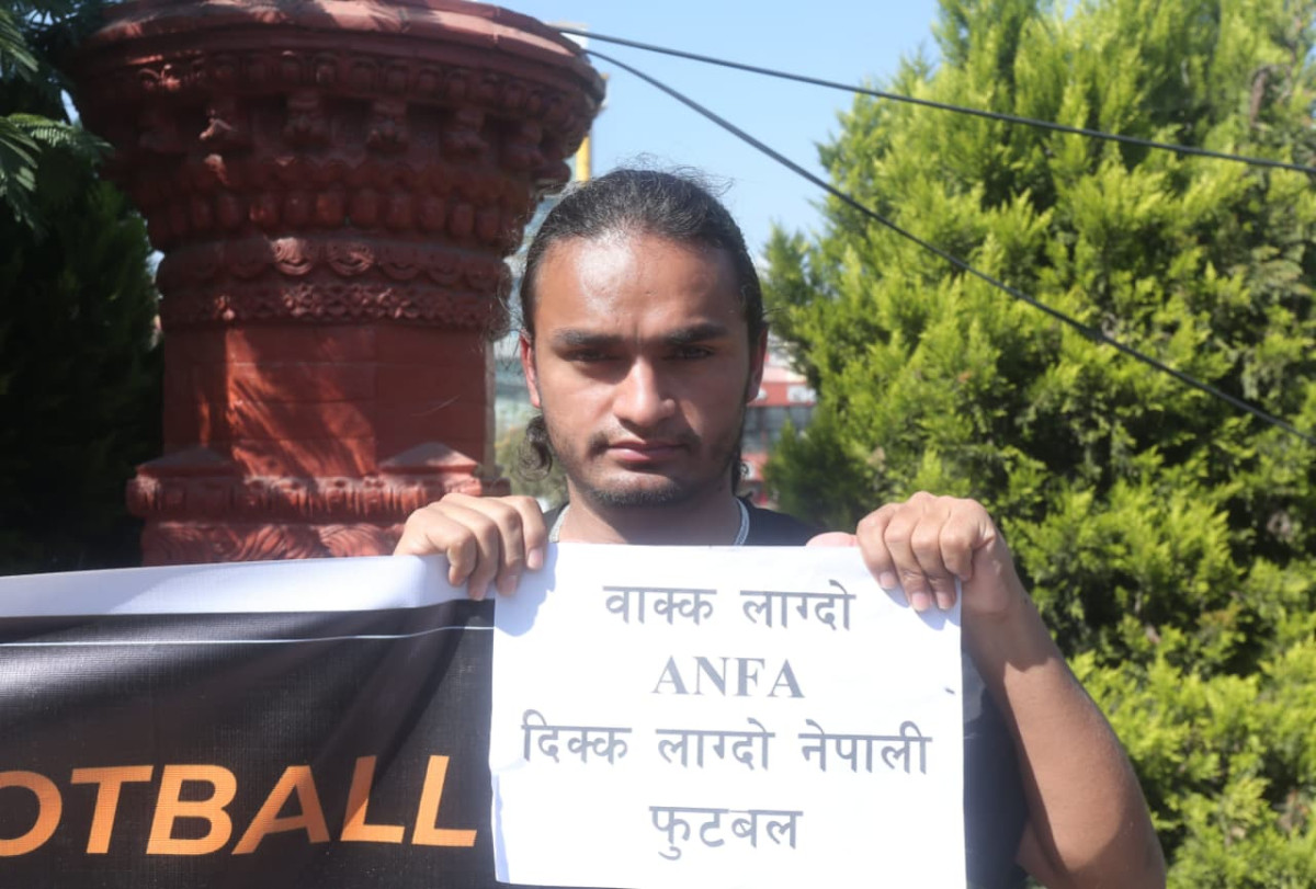 बिहीबार बिहान अखिल नेपाल फुटबल संघ (एन्फा) मुख्यालयमा उनीहरूले एक घण्टा धर्ना दिएका हुन् । उनीहरूले 'एन्फा फुटबल एसोसिएशन कि कन्सलटेन्सी ?', 'विश्वकप त चार वर्षमा आउँछ, ए डिभिजन कहिले आउँछ ?', 'नो गेम, नो फ्रेमः एन्फाज टु ब्लेम', 'घरेलु लिग चलाऊ, फुटबल बचाऊ', 'वाक्क लाग्दो एन्फाः दिक्क लाग्दो नेपाली फुटबल', 'फुटबल क्यालेन्डरमा होइन, ग्राउण्डमा चाहियो'लगायतका प्लेकार्ड बोकेर प्रदर्शन गरेका हुन् ।