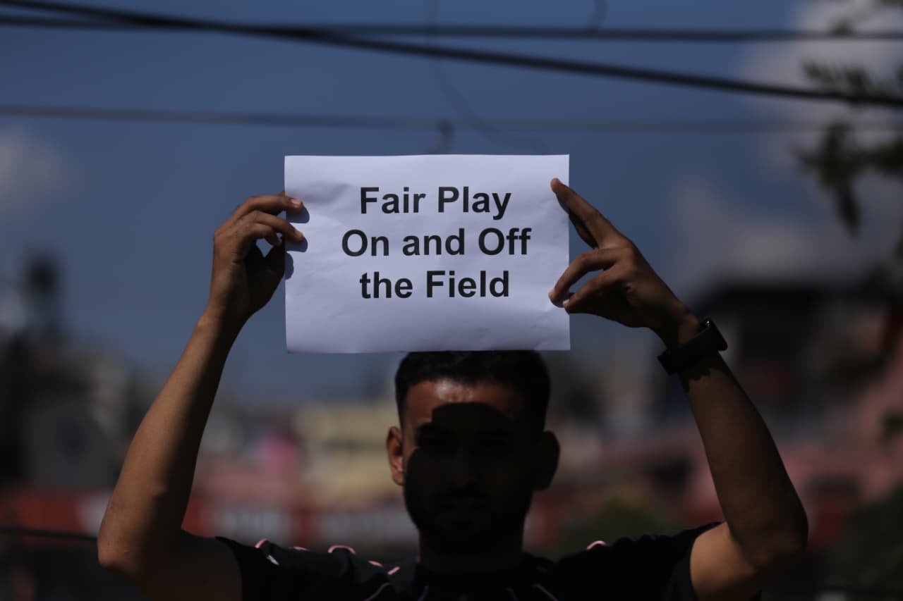 काठमाडौं : नेपाली फुटबलमा विगत केही वर्षयता देखिएको अव्यवस्था, लिग स्थगन, आर्थिक अपारदर्शिता र नेतृत्वको गैरजवाफदेहिताविरुद्ध फुटबलका सरोकारवालाहरूले धर्ना दिएका छन् ।