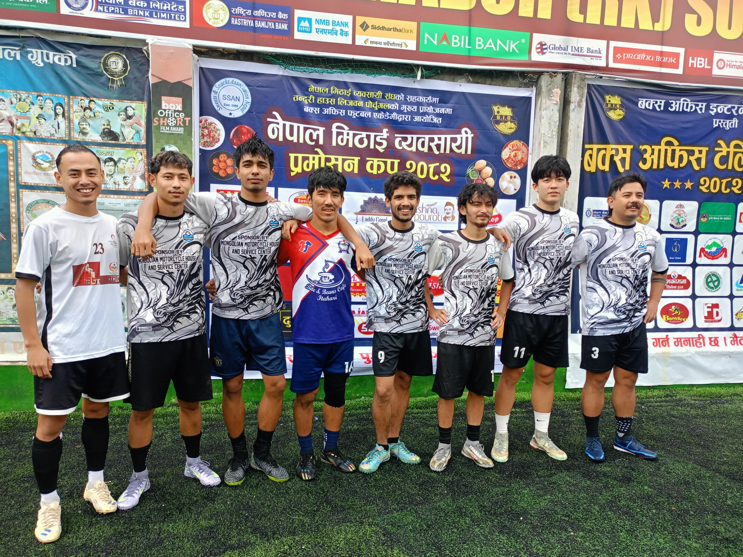 काठमाडौं : बक्स अफिस इन्टरनेसनल ग्रुपले युवा पुस्ता र जनस्तरसम्म व्यवसायलाई फुटबलको माध्यमबाट जोड्ने उद्देश्यका साथ देशभर करिब ५३ वटा फुटबल प्रतियोगिता सञ्चालन गरिरहेको छ । सोही अभियानअन्तर्गत राजधानीको इलाइट फुटसलमा ‘बक्स अफिस नेपाल मिठाइ व्यवसायिक प्रमोशन कप २०८२’ भव्य रूपमा सम्पन्न भएको छ ।