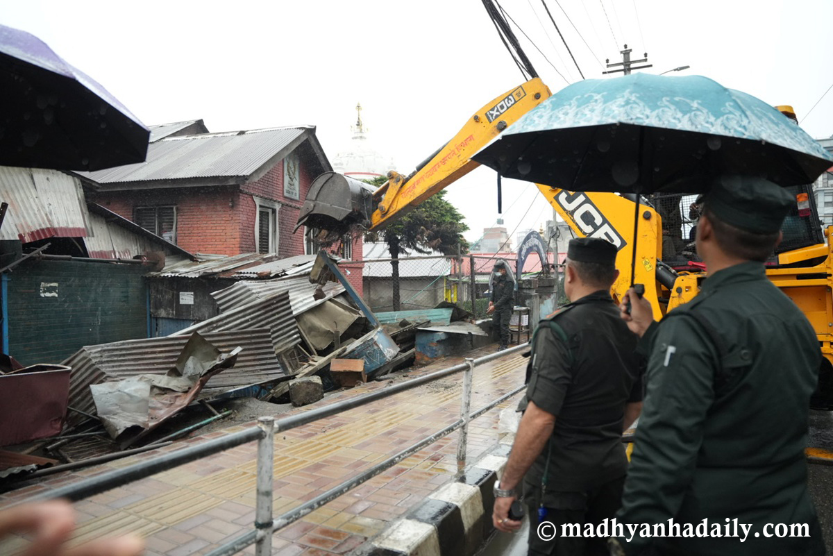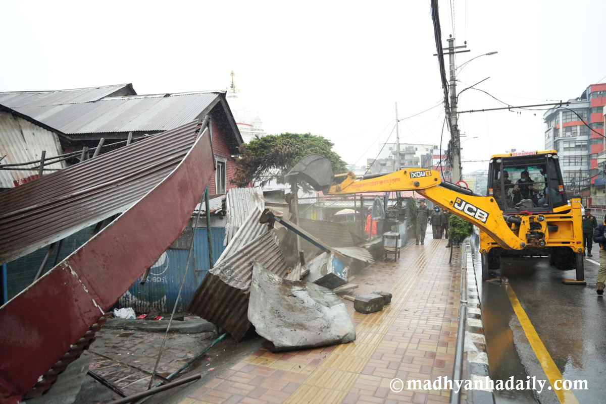 सम्पदा क्षेत्रमा संरचना निर्माण गरी गैरकानुनी रुपमा भाडामा लगाइएको कारण डोजर लगाई भत्काइएको महानगरले जानकारी दिएको छ । सम्पदा क्षेत्रमा निर्माण गरिएको यस्ता संरचना हटाई सम्पदा क्षेत्र खुला र व्यवस्थित गर्ने महानगरको योजना समेत रहेको महानगरले जानकारी दिएको छ ।