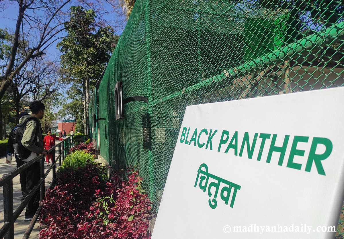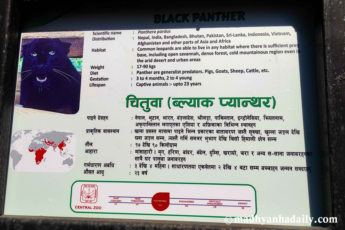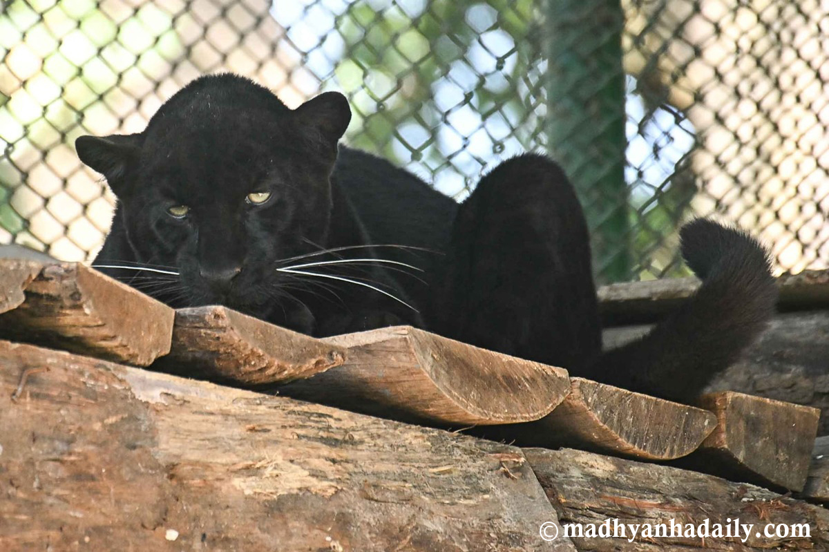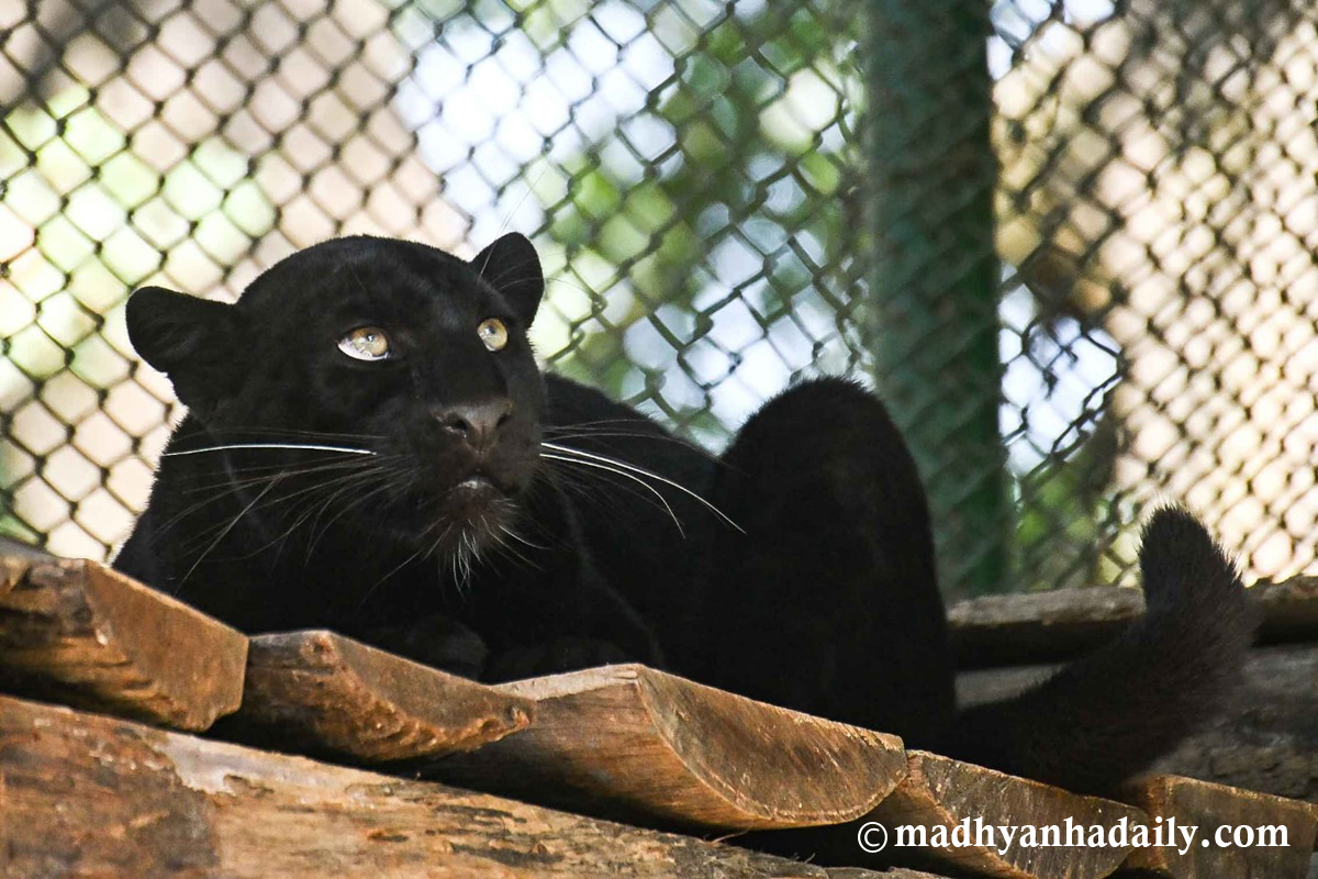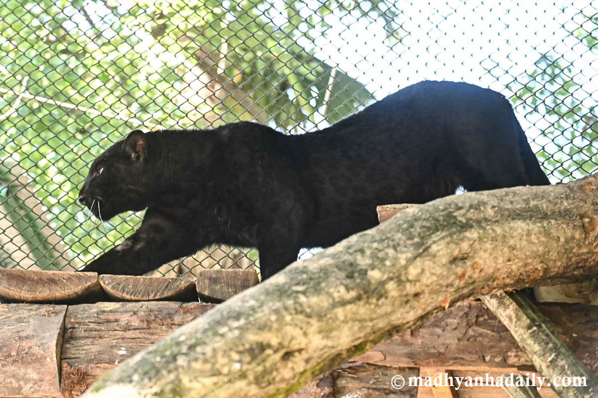 ललितपुर : जावलाखेलस्थित केन्द्रीय चिडियाखानामा हाल इलाम जिल्लाबाट उद्धार गरिएको कालो चितुवा (प्यान्थर) प्रदर्शनीका लागि राखिएको छ । सो पोथी चितुवा २०२५ सेप्टेम्बर महिनामा चिडियाखानामा ल्याइएको हो ।