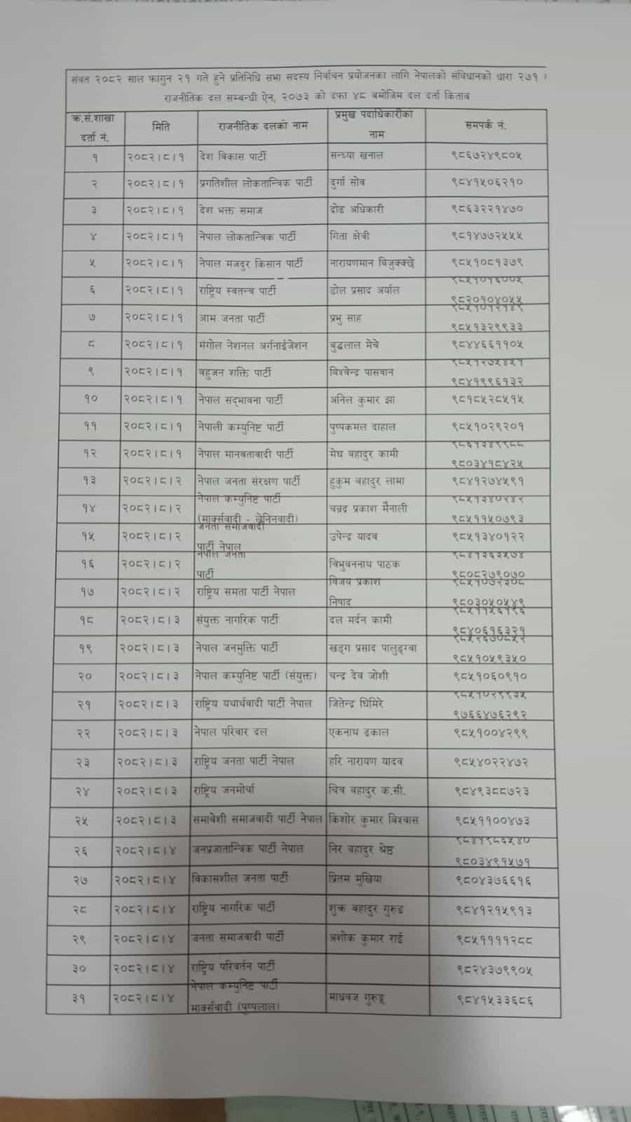 काठमाडौं : निर्वाचनमा आयोगमा ६४ दल दर्ता भएका छन् । प्रतिनिधिसभा निर्वाचनका लागि दल दर्ता भएको आयोगले जनाएको छ ।