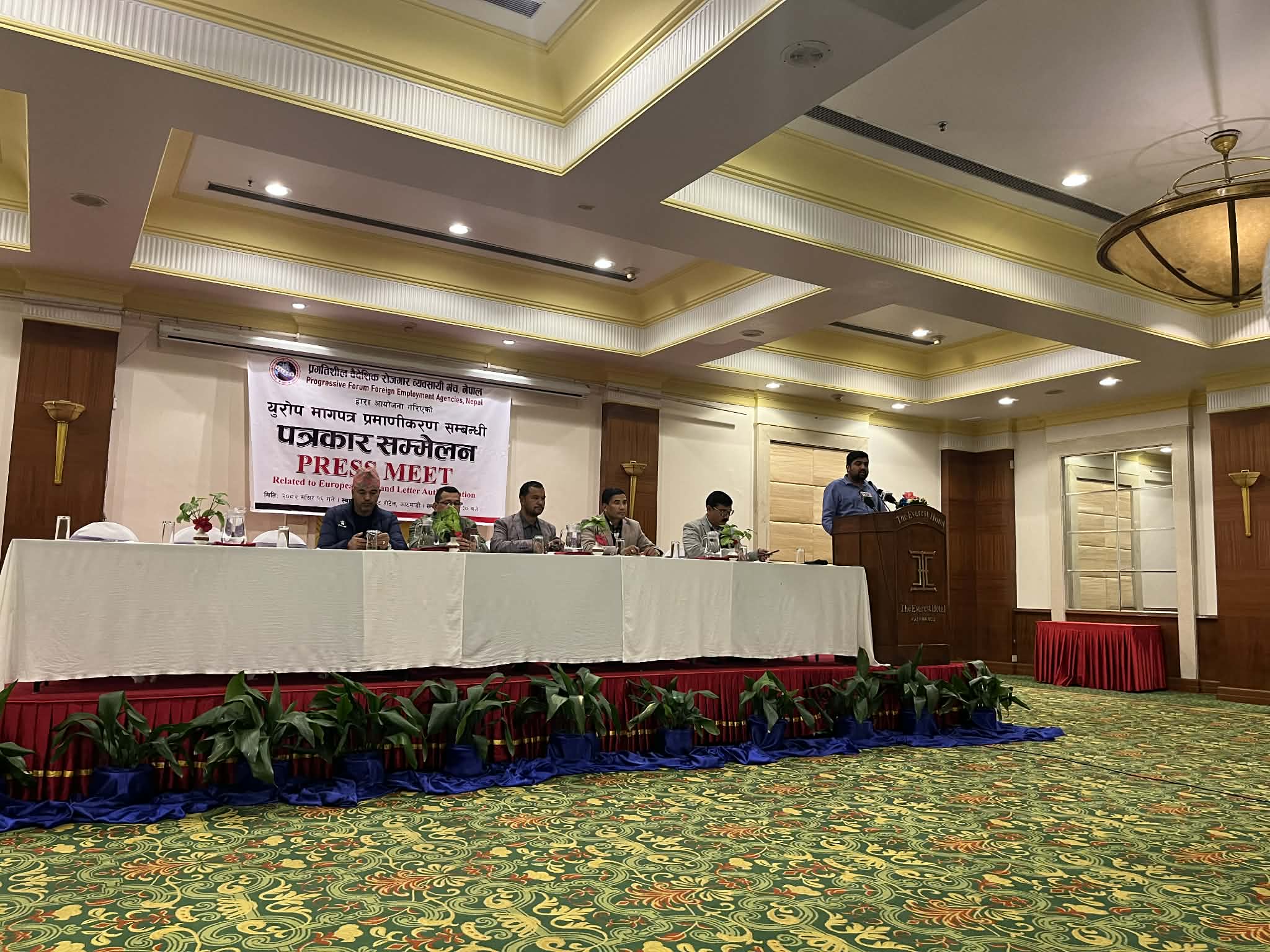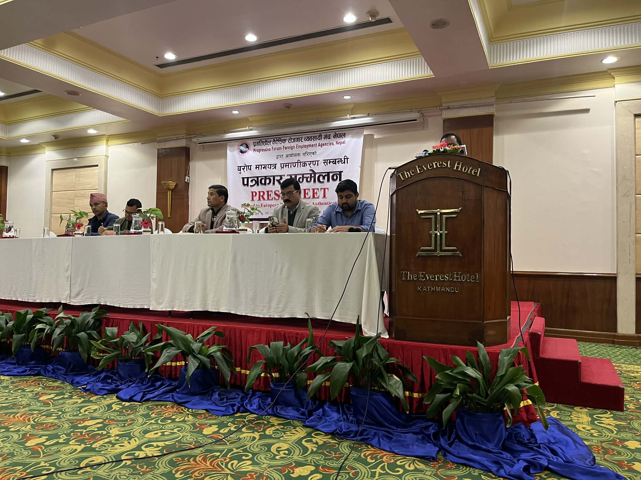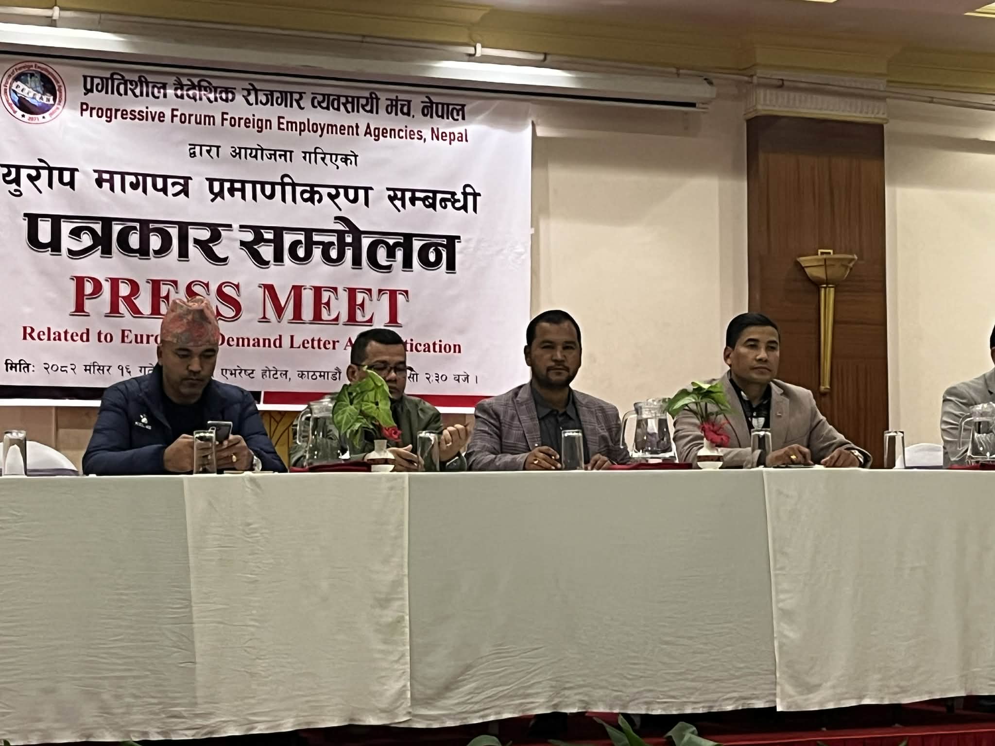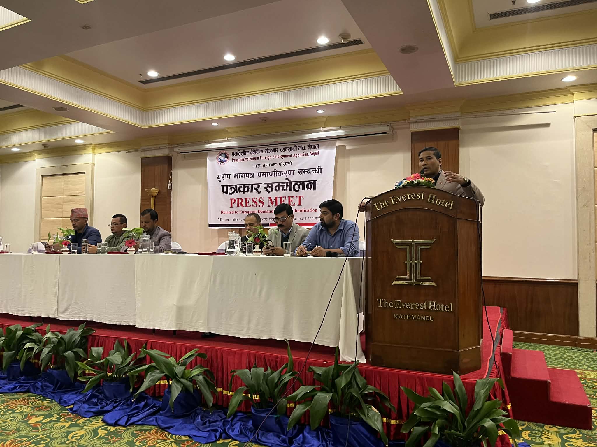 मञ्चका वरिष्ठ उपाध्यक्ष डिकबहादुर खत्री ‘कुमार’ले वैदेशिक रोजगार ऐन २०६४ अनुसार गन्तव्य मुलुकको नेपाली कूटनीतिक नियोगबाट प्रमाणित मागपत्र र अख्तियारनामाको सक्कल प्रति अनिवार्य रूपमा नेपाली राजदूतावास तथा कूटनैतिक नियोगमा पेस गर्ने कानुनी व्यवस्था रहेकोे र युरोपेली मुलुकहरूमा रहेका नेपाली नियोगहरूले मागपत्र प्रमाणीकरण नगर्दा नेपाली कामदारका साथै व्यवसायी पीडित भएको बताए ।
