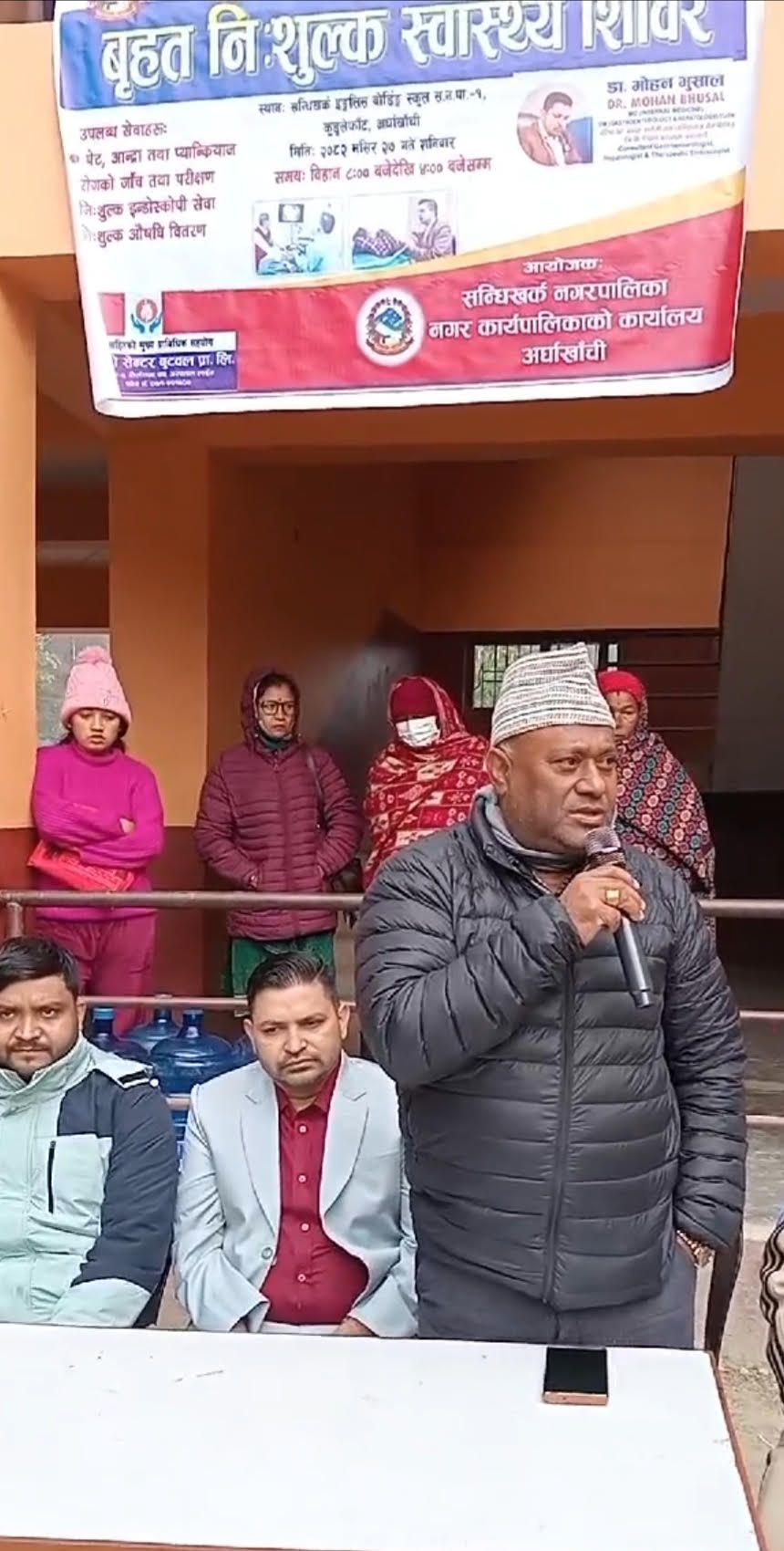 अर्घाखाँची : अर्घाखाँचीको सदरमुकाम सन्धिखर्कमा निःशुल्क स्वास्थ्य परीक्षण शिविर सम्पन्न भएको छ । सन्धिखर्क नगरपालिकाको आयोजना र ग्यास्ट्रो सेन्टर प्रालि बुटवलको प्राविधिक सहयोगमा एक दिने निःशुल्क स्वास्थ्य परीक्षण शिविर सम्पन्न भएको हो । विभिन्न रोगका विशेषज्ञ डाक्टरबाट सेवा दिने उदेश्यले निःशुल्क स्वास्थ्य शिविर सञ्चालन गरिएको थियो । शिविरमा पेट, छाती, आन्द्रा कलेजो जस्ता रोगहरूको उपचार गरिएको नगरप्रमुख कृष्णप्रसाद श्रेष्ठले जानकारी दिए ।
