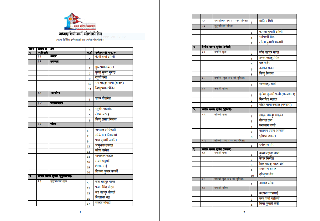 काठमाडौं : नेकपा (एमाले)को ११औं महाधिवेशनमा संस्थापन पक्षले उम्मेदवारहरूको नामावली तयार पारेको छ । विभिन्न पदका उम्मेदवारको पक्षमा मतदान हुनुअघि संस्थापन पक्षले उम्मेदवारको नामावली तयार पारेको हो ।