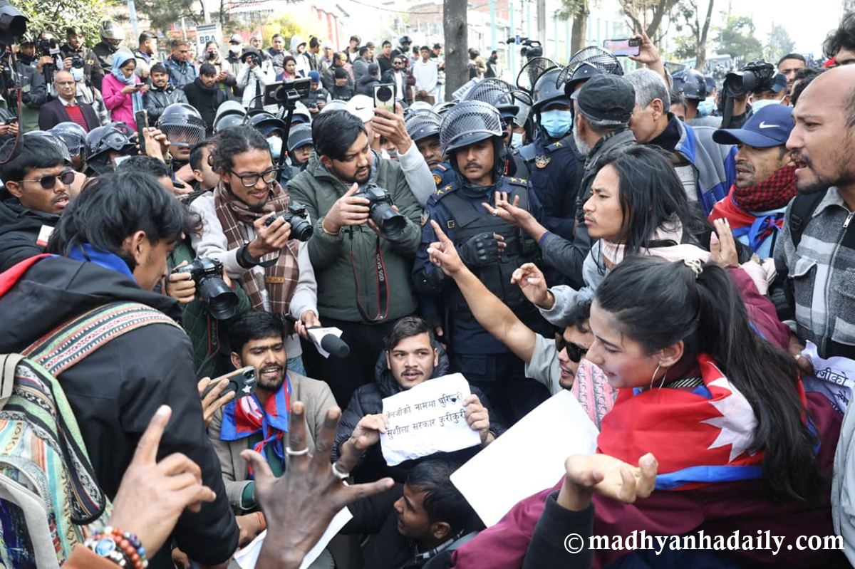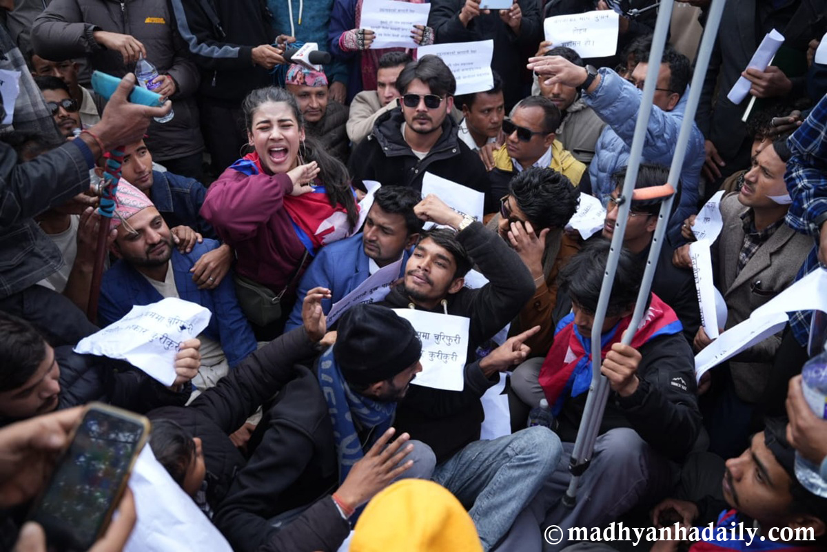 काठमाडौं : जेनजी आन्दोलनका अभियन्ता मिराज ढुंगाना नेतृत्वको समूहले विरोध प्रदर्शन गरेको छ ।
