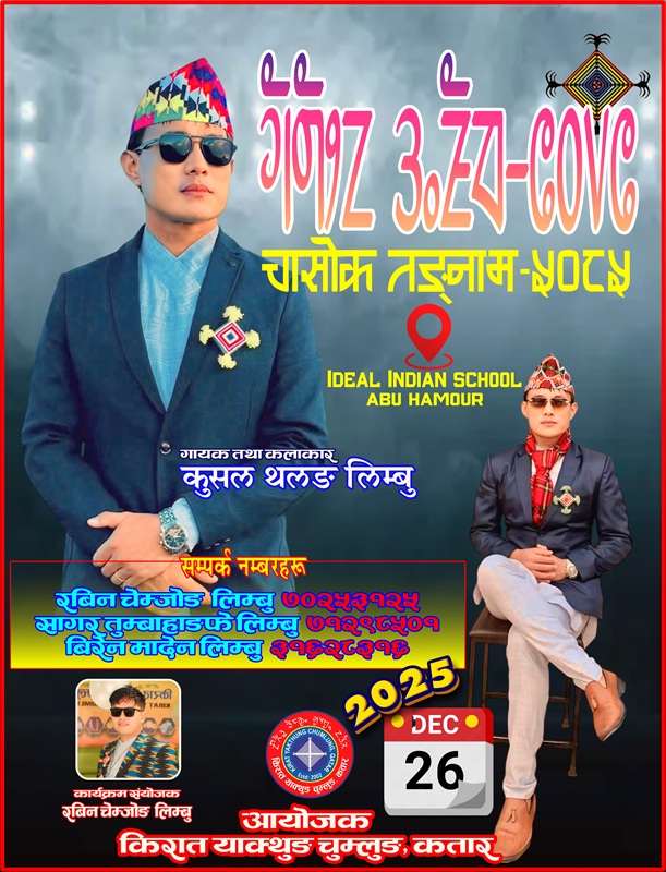 भोलि डिसेम्बर २६, शुक्रबार अबुहामुरमा अवस्थित आइडल इन्डियन स्कुलमा हुने कार्यक्रममा सरिक हुन कतारका मुख्य-मुख्य स्थानबाट यातायातको सुविधा समेत रहेको र कार्यक्रमको थप जानकारीका लागि सागर तुम्बाहाङ्फे लिम्बू ७१२९८५०१, रबिन चेम्जोङ लिम्बू ७०२५३१२५, बिरेन मादेन लिम्बू ३१६२८३१६ लाई सम्पर्क गर्न सकिने आयोजकले जनाएको छ ।
