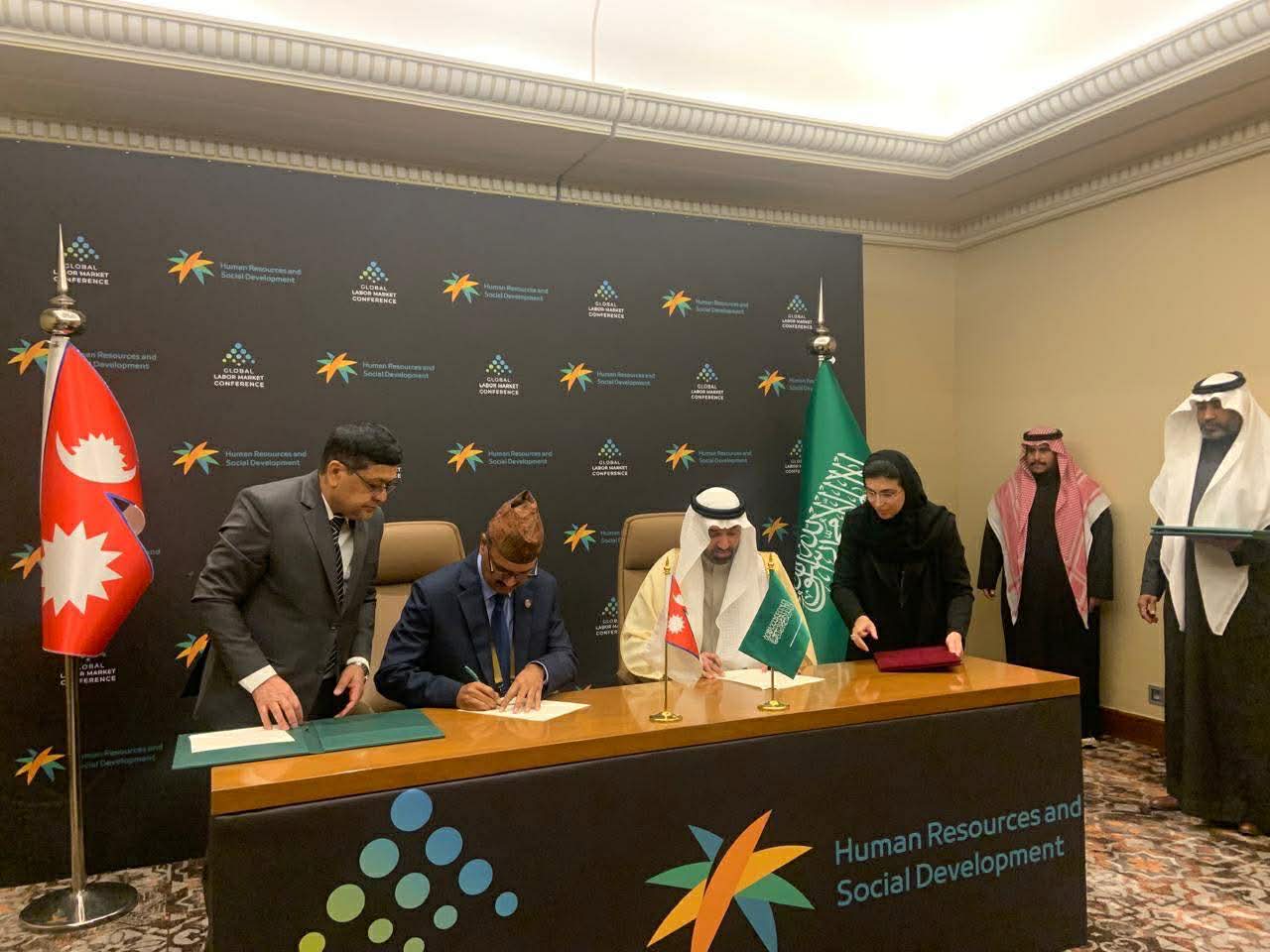 रियाद, साउदी अरब : नेपाल सरकार र साउदी अरब सरकारबीच द्विपक्षीय श्रम सम्झौता भएको छ । आइतबार राति साउदी अरबको राजधानी रियादमा आयोजित एक कार्यक्रममा नेपाल सरकारका तर्फबाट श्रम, रोजगार तथा सामाजिक सुरक्षा मन्त्री राजेन्द्रसिंह भण्डारी तथा साउदी अरब सरकारका तर्फबाट मानव संशाधन तथा सामाजिक विकास मन्त्री अहमद बिन सुलेमान अलराजीले उक्त सम्झौतामा हस्ताक्षर गरे ।