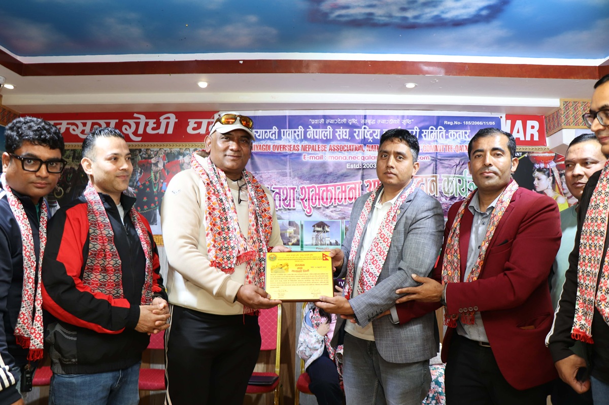 दोहा कतार : कतार भ्रमणमा रहेका म्याग्दी जिल्ला बेनी नगरपालिका ६ का वडाध्यक्ष कृष्ण सिंह बानियाँ र म्याग्दी प्रवासी नेपाली संघ(मोना) अन्तर्राष्ट्रिय कार्यकारी समितिका उपाध्यक्ष तथा बेलायतका स्थापित व्यवसायी किसान जिसी मोना कतारमार्फत सम्मानित भएका छन् । बिहीबार साँझ मोना कतारका अध्यक्ष बाबुराम भण्डारीको सभाध्यक्षता तथा वडाध्यक्ष बानियाँको प्रमुख आतिथ्यतामा सम्पन्न स्नेह मिलन तथा शुभकामना आदान–प्रदान कार्यक्रममार्फत मायाको चिनोसहित उनीहरू सम्मानित भएका हुन् ।