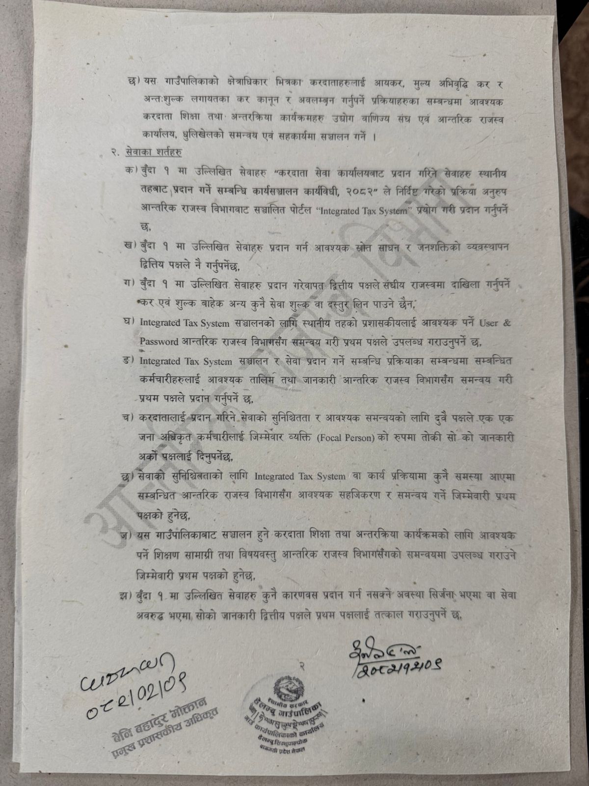 नेपाल सरकारको नीतिअनुसार स्थानीय तहलाई सेवा प्रवाहमा सशक्त बनाउने उद्देश्यले गरिएको यस समझदारीपछि व्यक्तिगत तथा व्यावसायिक स्थायी लेखा नम्बर जारी गर्ने, मूल्य अभिवृद्धि कर दर्ताका लागि सिफारिस गर्ने, कर चुक्ता प्रमाणपत्र उपलब्ध गराउनेलगायतका सेवा हेलम्बु गाउँपालिकाबाटै प्रदान गरिने जनाइएको छ ।